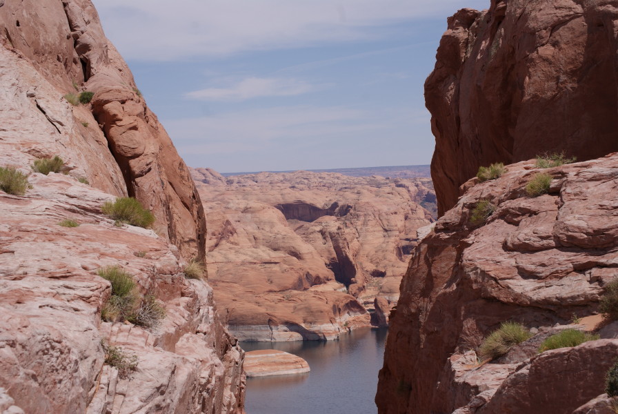 Am Ende des Weges wartet dann aber ein unglaublicher Ausblick auf den Lake Powell auf uns... das berühmte Hole in the Rock... den Weg, den auch die Siedler mit ihren Planwagen nahmen. Kaum zu glauben! Natürlich gabs damals den See noch nicht.