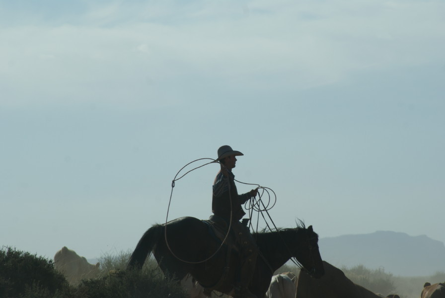 Dann sehen wir noch einen echten Cowboy, der ein paar Kühe über die Strasse treibt... das ist ja wie im wilden Westen