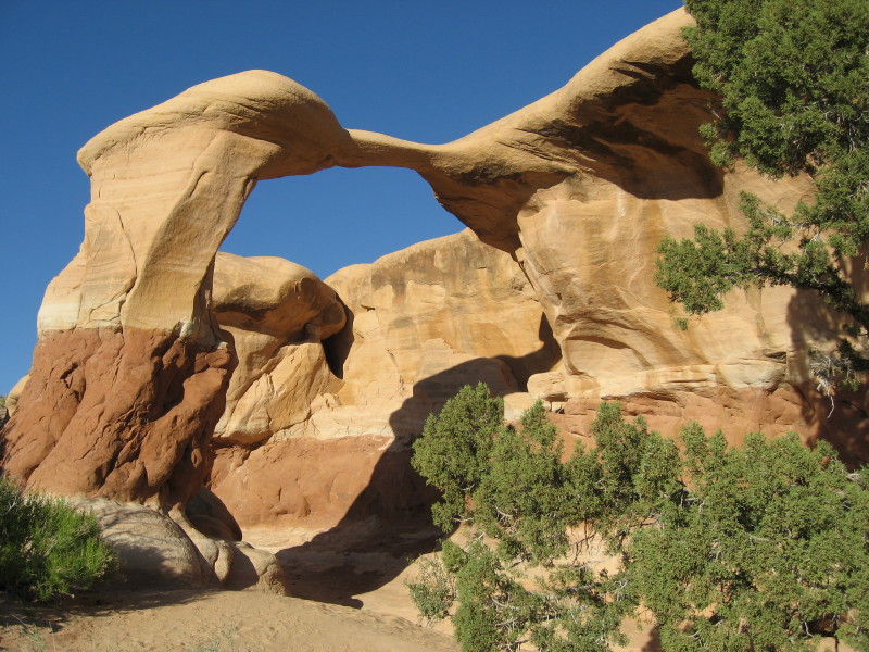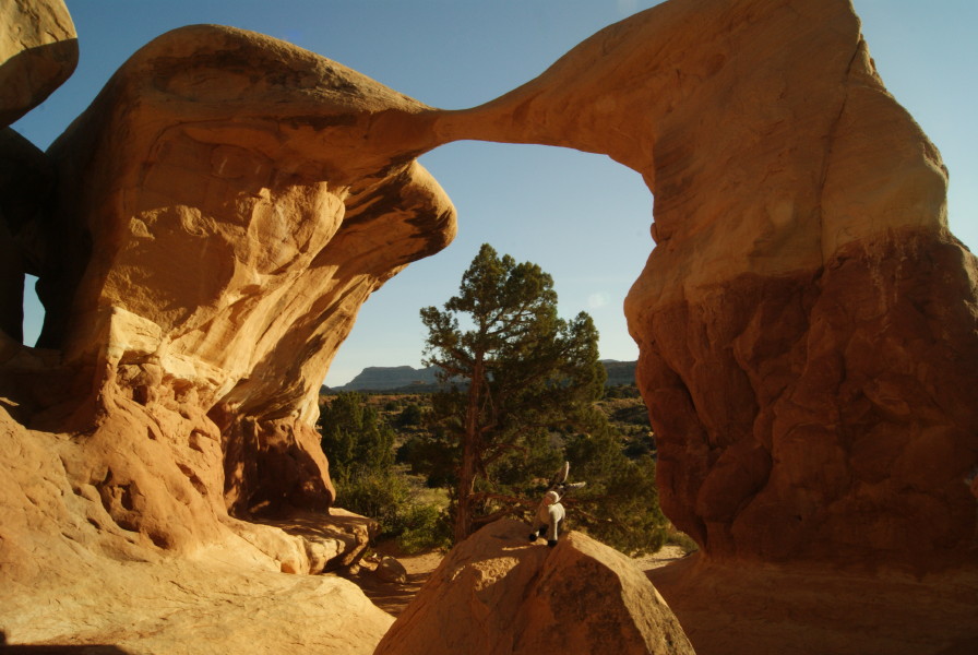 .. fahren wir erstmal zum Visitor Center, um uns nach dem Zustand der Hole-in-the-rock-road zu erkundigen. Laut Auskunft der Rangerin wurde die Strasse gerade gegradet und ist in einem super Zustand, sogar mit einem normalen PKW könnte man sie befahren... "was, ihr habt einen SUV?... überhaupt kein Problem" Nur die letzten 5-6 Meilen wäre High Clearance empfehlenswert. Also fix noch Eis für die Kühlbox besorgt und bei der Gelegenheit leider festgestellt, daß es im General Store zwar Klebeband, Abflußrohr und allerlei Zeug gibt, aber keine Luftpumpe für unser Airbed. Damit fällt Zelten heute flach.
