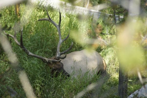 In Mammoth Hot Springs beschränken wir uns auf den Auto-Loop durch die Upper Terraces. Hier – wie eigentlich immer – hat der unentbehrliche Reiseführer „Der ganze Westen“ von Grundmann recht: Die Terrassen haben einen Großteil ihrer Attraktivität verloren, seit der Wasserfluss versiegt ist. Trotzdem sind die weißen Steinformationen schön anzusehen. Wir sind einmal mehr sehr froh, den Van für sieben zu haben, denn das Wohnmobil darf den Loop nicht fahren und wird auf dem Parkplatz abgestellt.