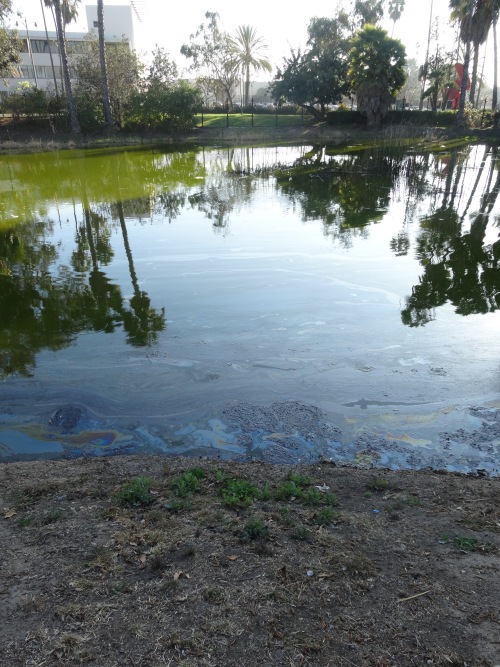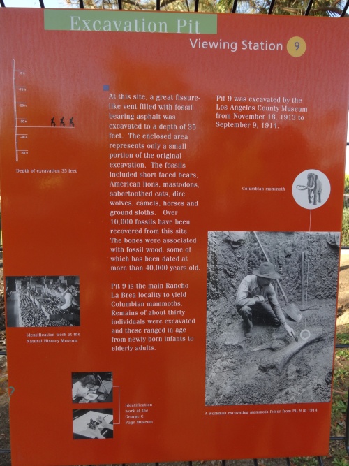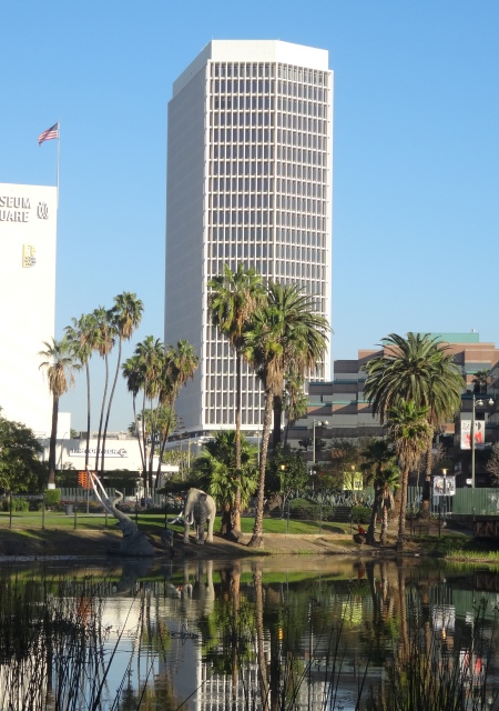 Wir beschlossen das Gelände zu verlassen und zu den La Brea Tar Pits im Zentrum der Stadt zu fahren. Die Teergruben befinden sich  im Hancock Park am Wilshire Blv. Man kann direkt beim Page Museum parken (7$). Der Teer kommt hier schon seit Jahrtausenden natürlich an die Oberfläche. Die Indianer verwendeten die Vorkommen genauso wie die ersten Siedler. In der Urzeit wurden die Gruben den Tieren zur Verhängnis. Sie blieben im Teer stecken und konnten sich nicht mehr befreien. Es werden daher hier viele Überreste dieser Tiere gefunden, die im Museum ausgestellt werden.