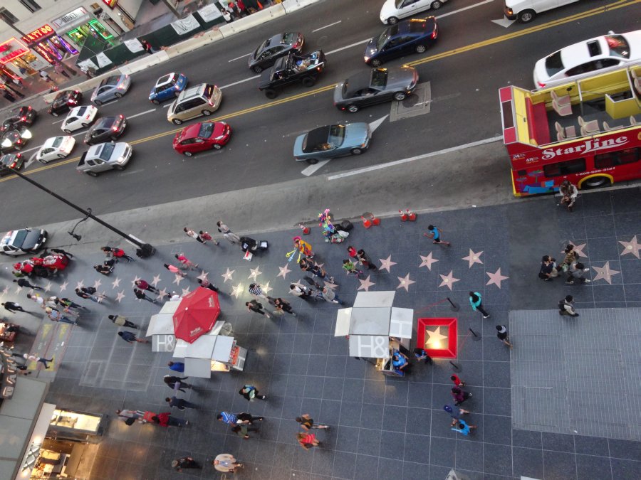 Wir spazierten den Walk of Fame entlang, der wenn man es genau betrachtet nicht besonderes ist. Ein paar Sterne in einer, abgesehen im Bereich der Dolby Theaters, eher schäbigen Straße.