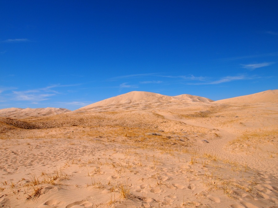 Bald erscheinen die Kelso-Dunes am Horizont. Der hellbraune Sand bietet einen schönen Kontrast zum Grün der Umgebung.