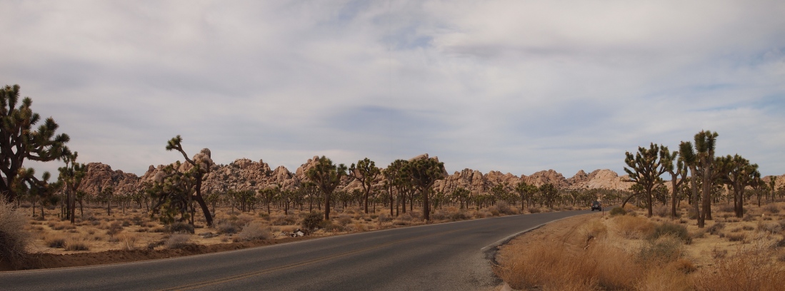 Wir fuhren die Straße zurück, am Skull vorbei bis zur Kreuzung zum Keys View. Hier war der Joshua Tree Wald besonders dicht.