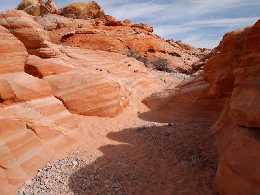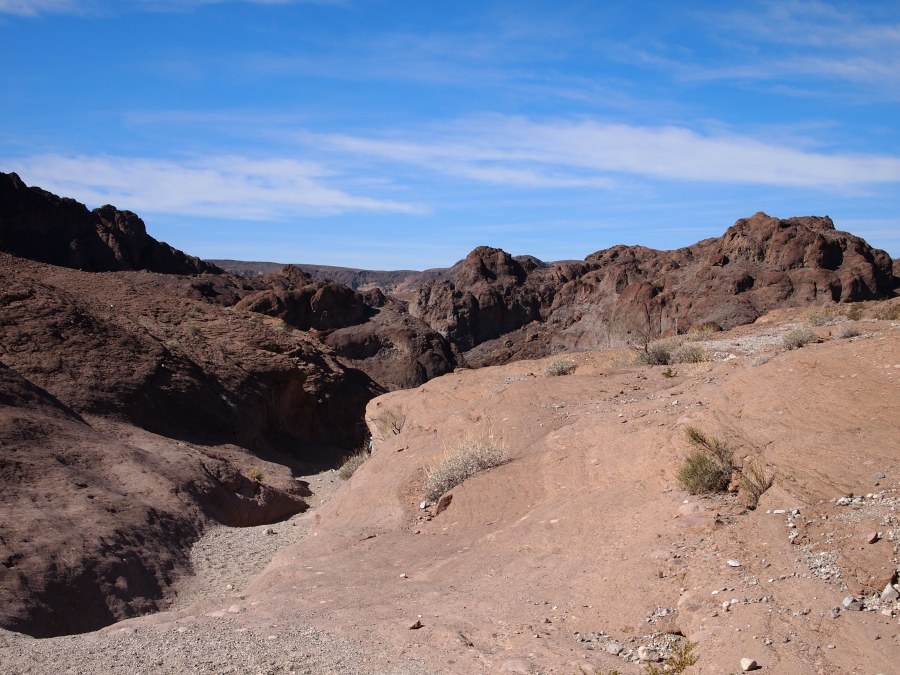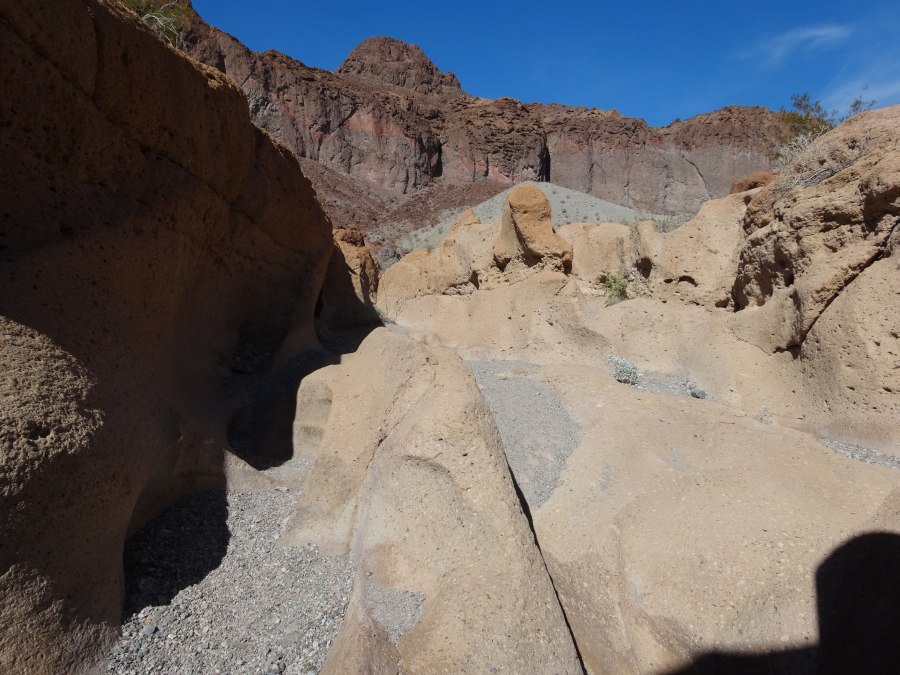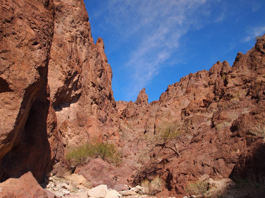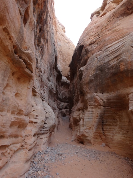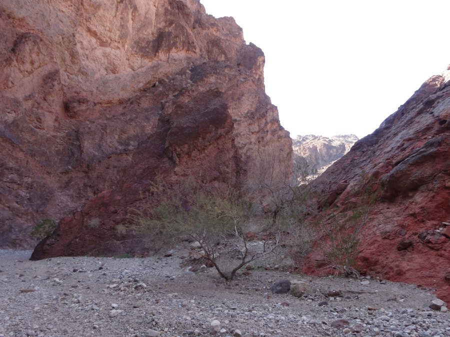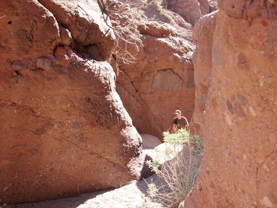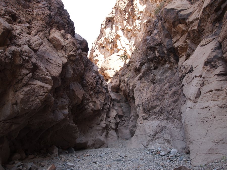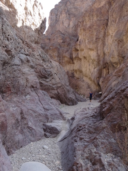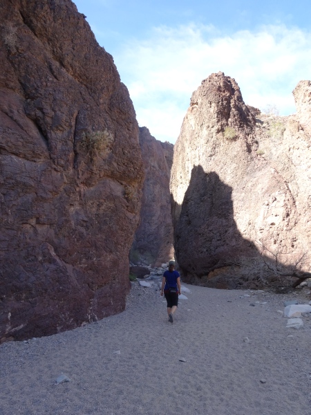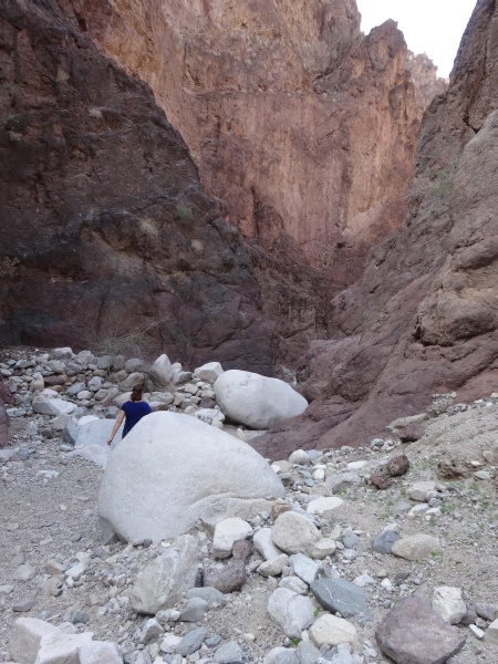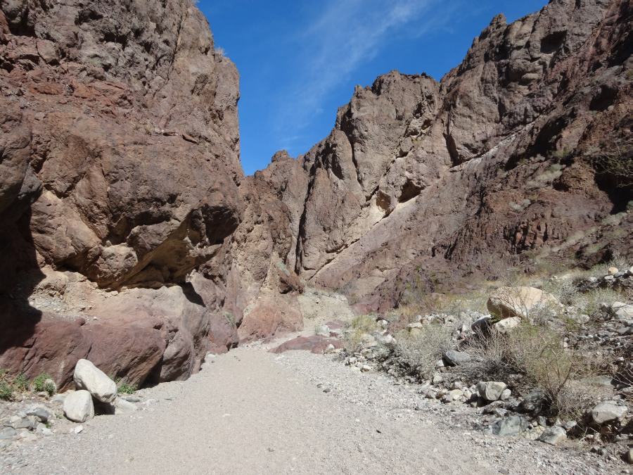 Zuerst geht es einige Zeit auf dem Geröll des Washes dahin, bis der Eingang in den Canyon beginnt.