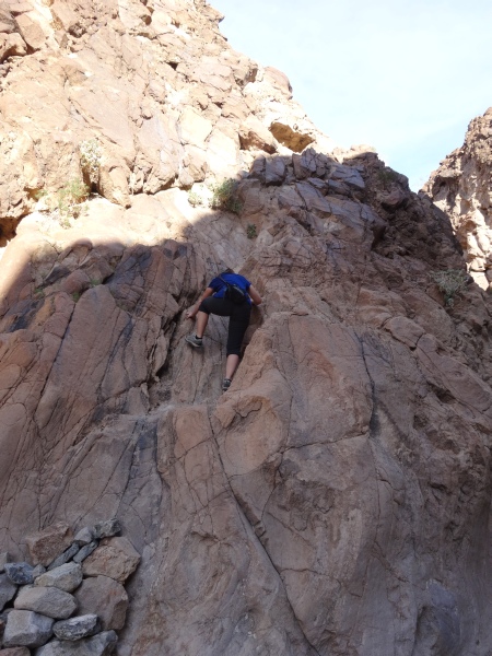 Es gibt aber eine Kletterstelle daneben. Heike überwand ihre Höhenangst und erklomm die Stelle mit Bravour.