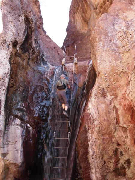 Nach kurzer Zeit erreichten wir eine Leiter bei einem Wasserfall. In der warmen Gischt des Wasserfalles stiegen wir die Leiter hinauf.