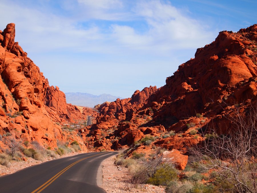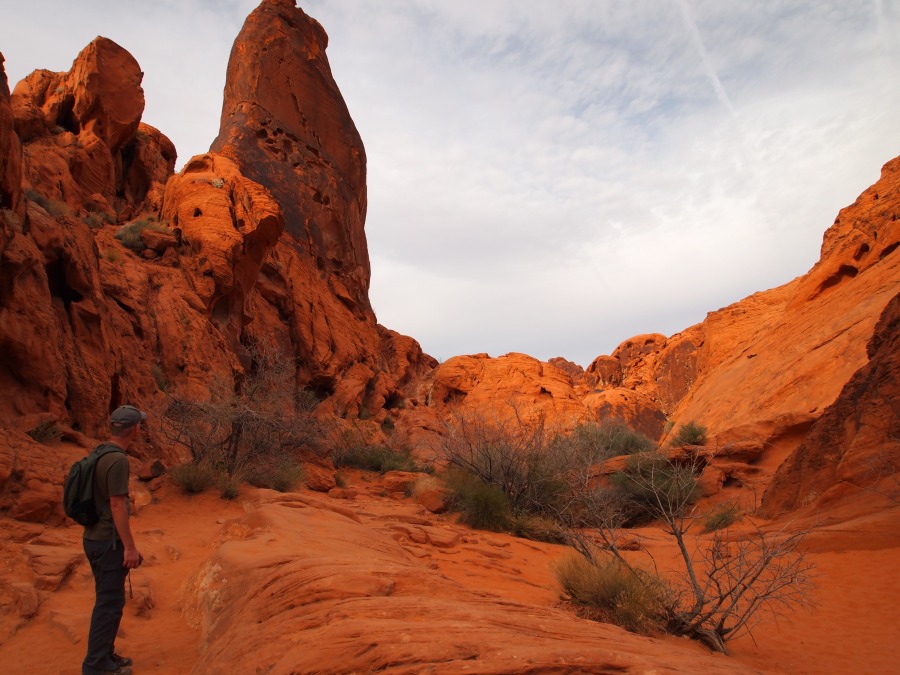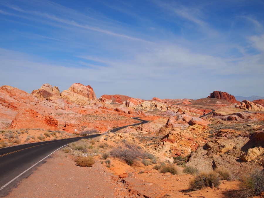 Unser erstes Ziel war das Visitor Center, um Informationen über die Wanderwege einzuholen. Bald machten wir uns auf den Weg über die Stichstraße zum White Domes Loop. Zuerst führt die Straße durch eine feuerrote Felsenlandschaft.