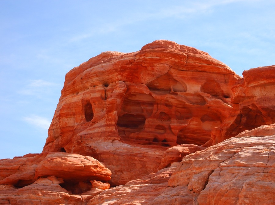 Nachdem wir den Eintritt bezahlt hatten wurde gleich klar, warum es hier Valley of Fire heißt. Die Felsen leuchteten tief rot in der Sonne.