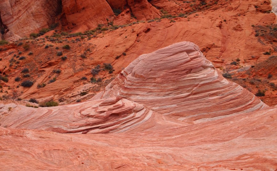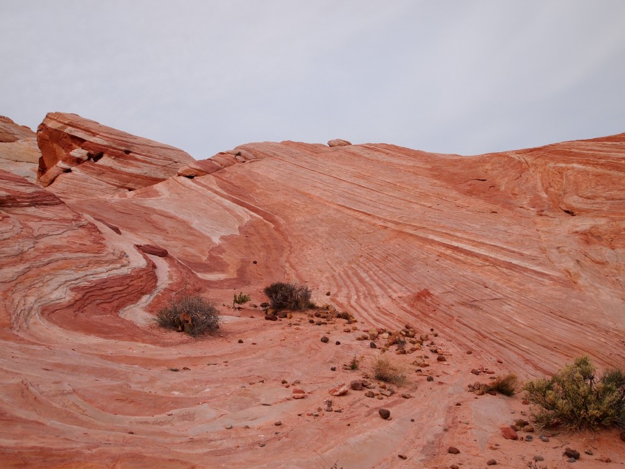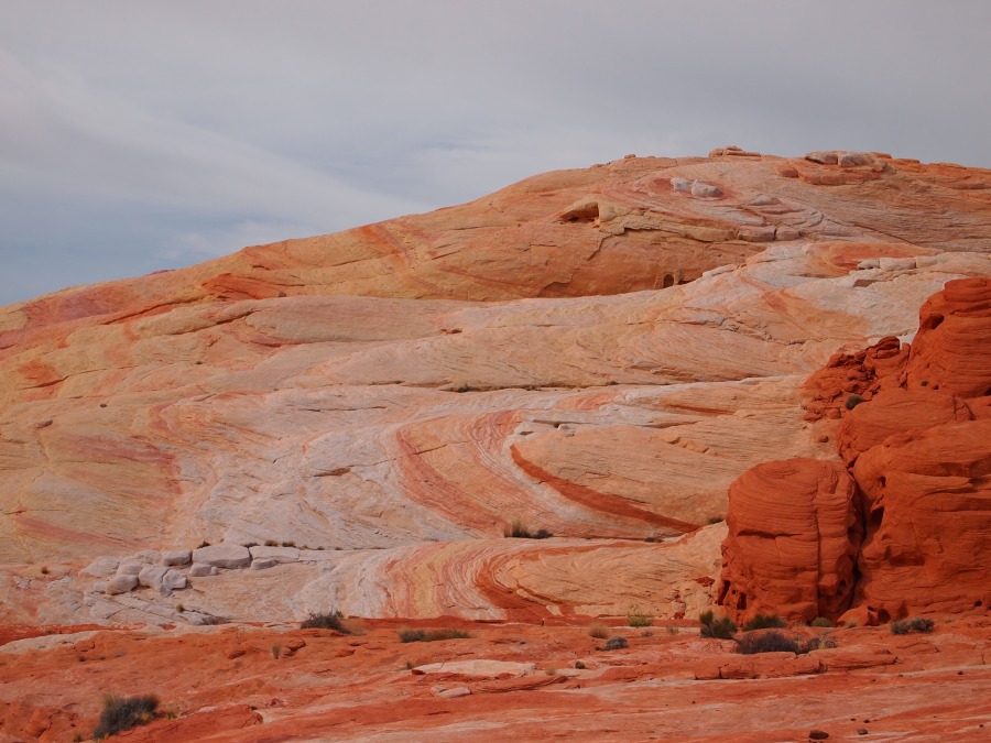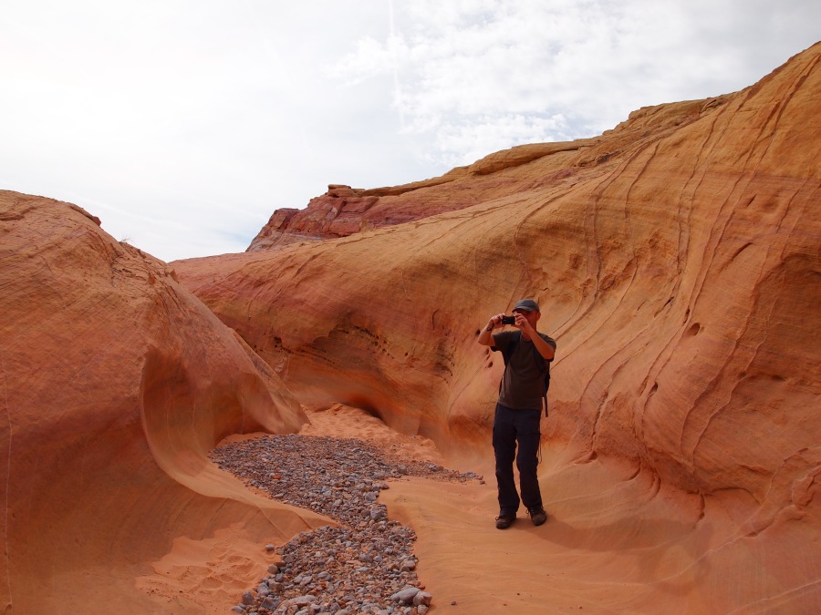 Der Weg durch den Canyon hat uns besser gefallen als die Fire Wave selbst. An der Straße angelangt, ging ich hinauf zum Parkplatz um das Auto zu holen. Nachmittags geht zum bzw. auf den Silica Dome.