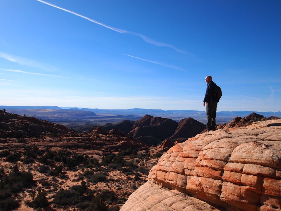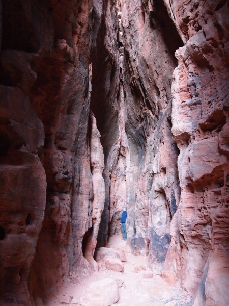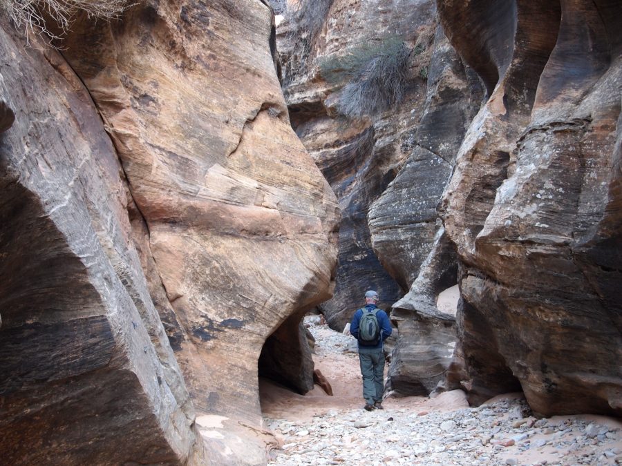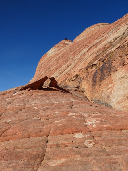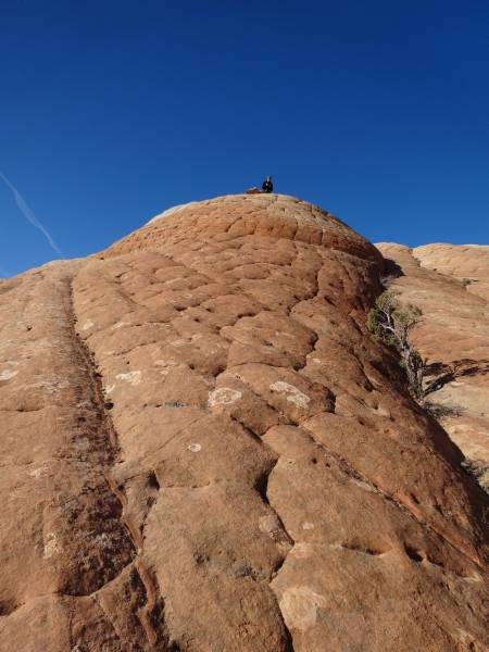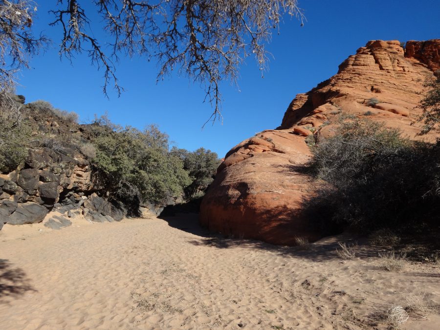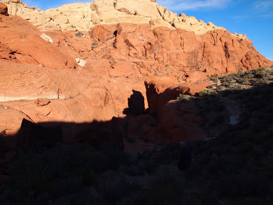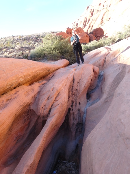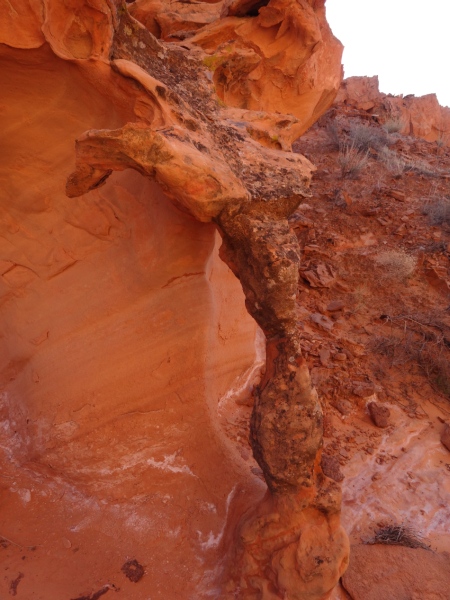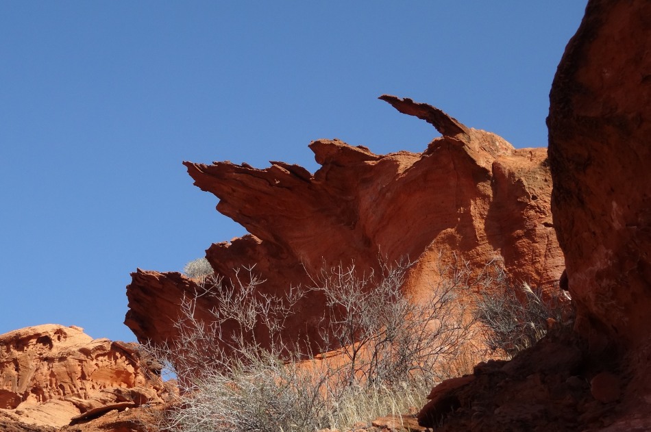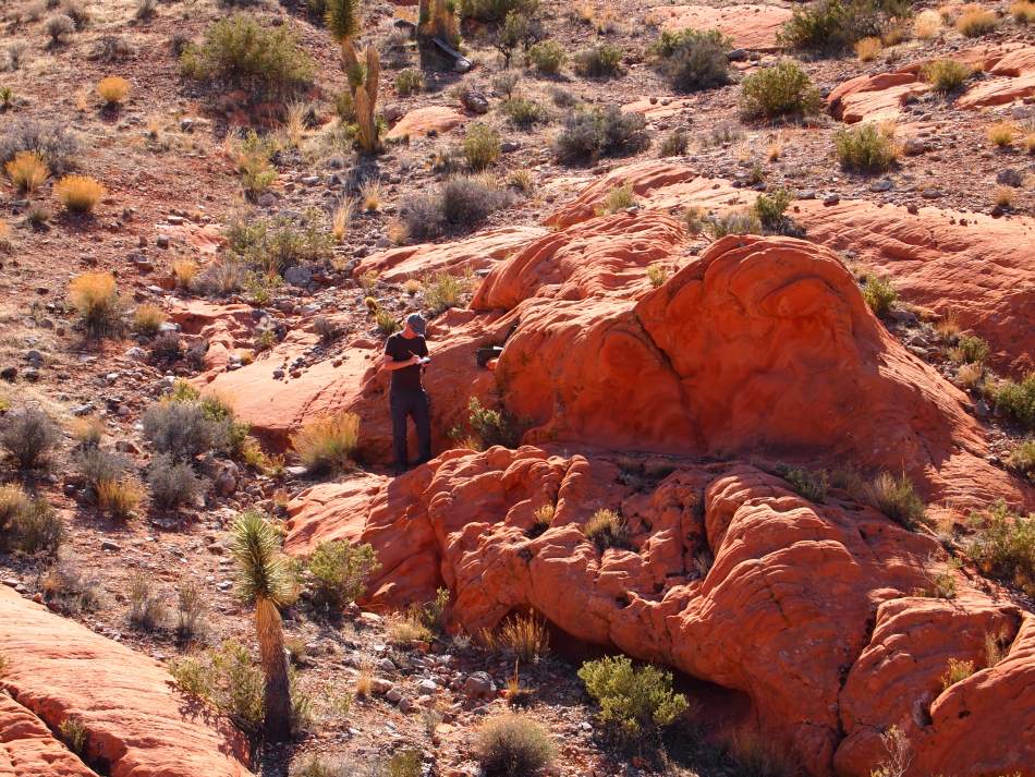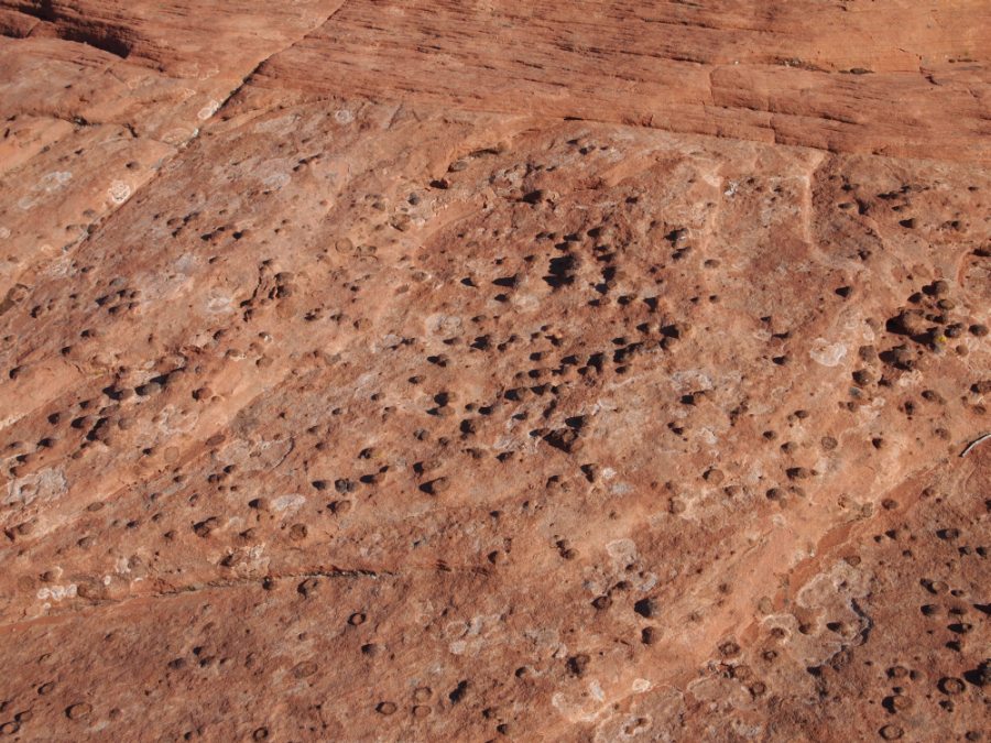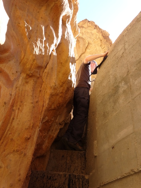 Bei einem nahegelegenen Felsen, mit einem kleinen Arch, wäre ich beim Suchen fast abgestürzt als sich ein Sandsteinfelsengriff löste. Mit einer Hand hing ich in 3- 4 Meter höhe am Fels. Glück gehabt.