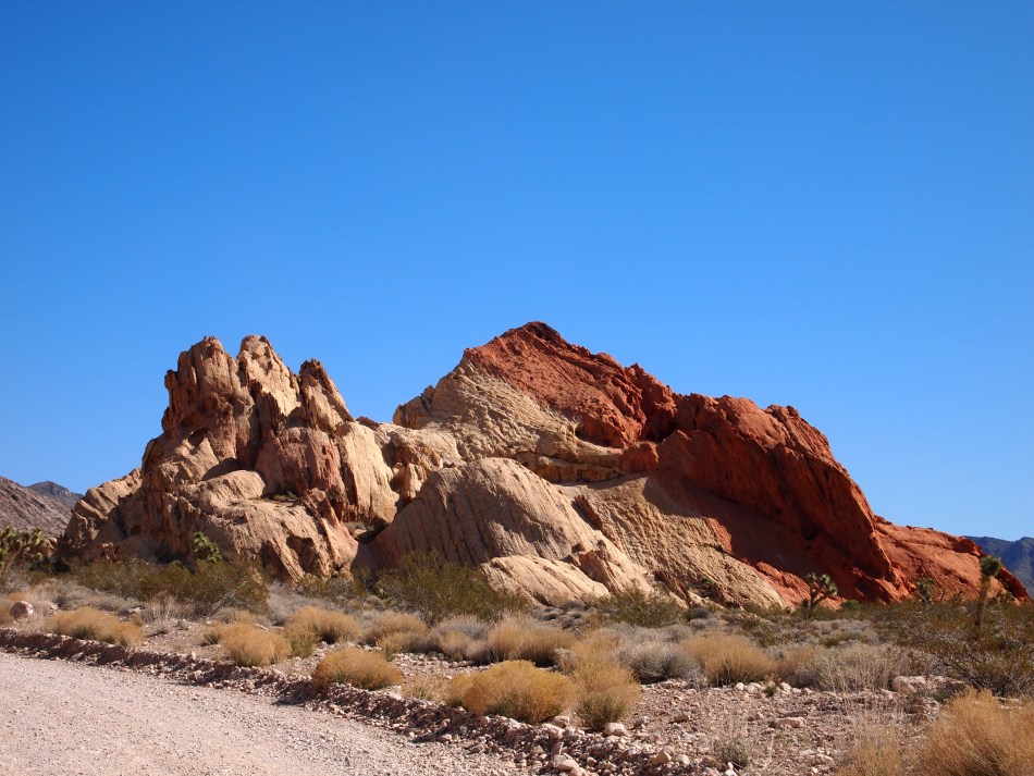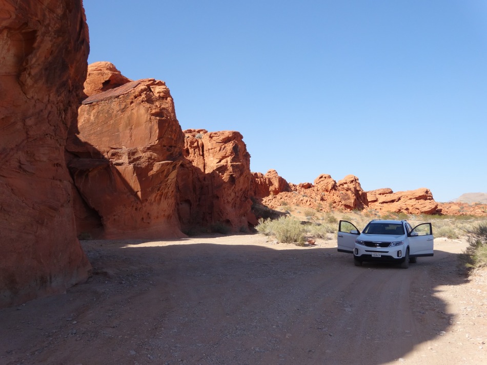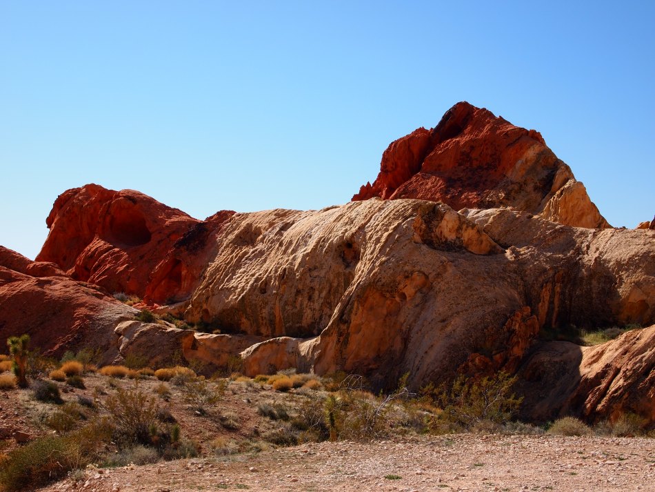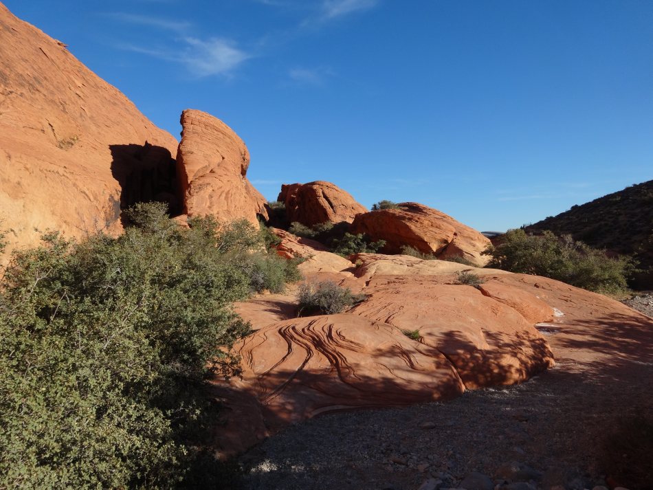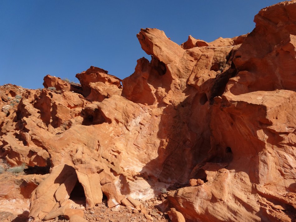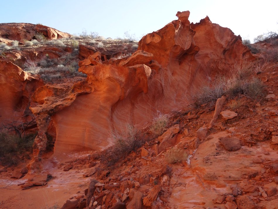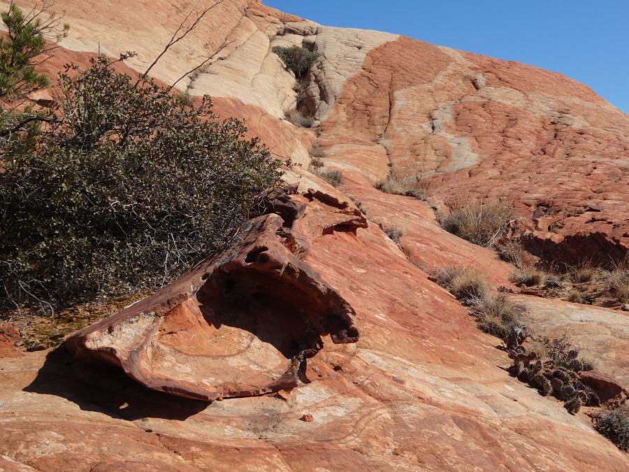 Es ist unverkennbar, dass dieses hier eine Fortführung des Valley of Fire ist. Es sind nur die Spitzen der Felskuppen zu sehen der Rest dürfte von Schutt und Sand überlagert sein. Zwei Beispiele: