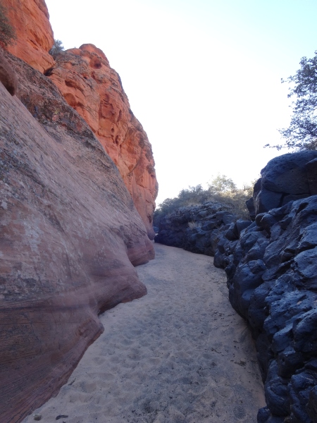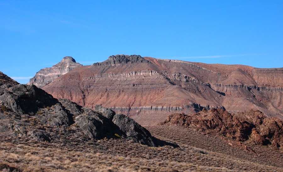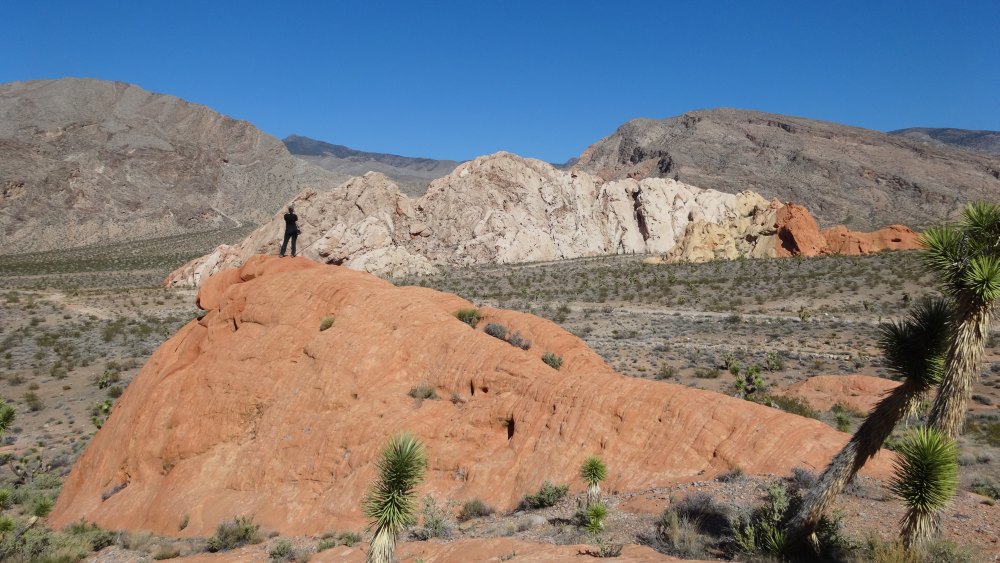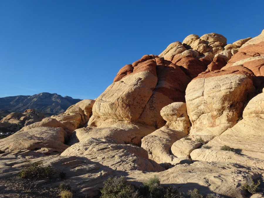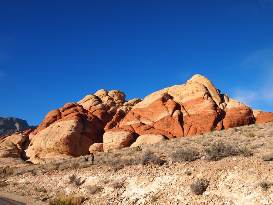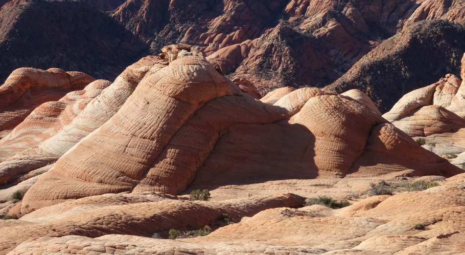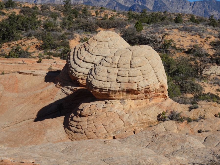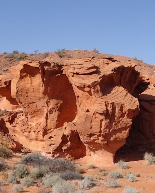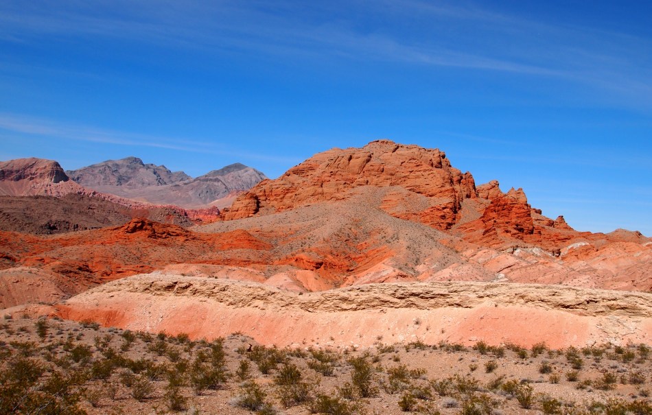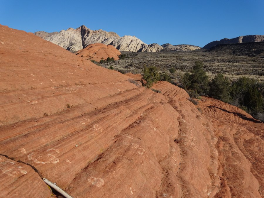 Es ist unverkennbar, dass dieses hier eine Fortführung des Valley of Fire ist. Es sind nur die Spitzen der Felskuppen zu sehen der Rest dürfte von Schutt und Sand überlagert sein. Zwei Beispiele: