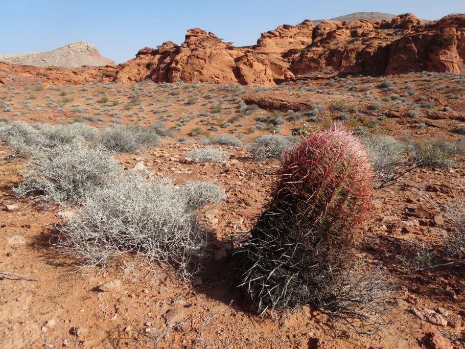 So richtig vom Hocker hat es uns aber nicht gehauen. In 700 m Entfernung war das Devils Fire in unserem Navigationsgerät eingezeichnet. Wir versuchten es zu Fuß. Als wir bei einem Canyon angelangt sind, den wir umgehen hätten müssen, drehten wir um da es schon relativ spät war und ich nicht im dunklen zurückfahren wollte. Nun rächte sich unsere Trödelei vom Vormittag. Wir haben uns verhalten wie die Anfänger. Die goldene Geocacher-Regel: „Zuerst zum Ziel und auf dem Rückweg mitnehmen was geht“. Wenigstes kamen wir bei einem der bummeligen Kaktusse vorbei, die hier sehr oft zu sehen sind.