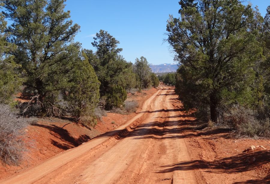 Die Straße ist fast bis zu den Whitney Pockets asphaltiert. Als wir die Asphaltstraße verließen, tauchten die ersten bunten Felsen auf. Hier gab es ein paar Geocache zu heben. Bei einem kleinen wilden Campingplatz fuhren wir in einen Seitenweg. Er führte uns zu einer kleinen Felsformation.