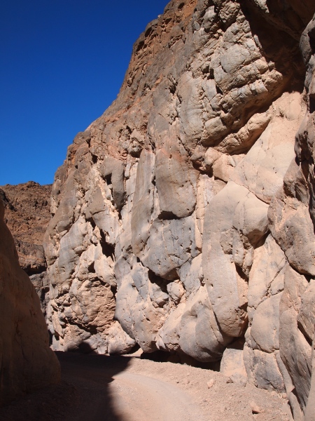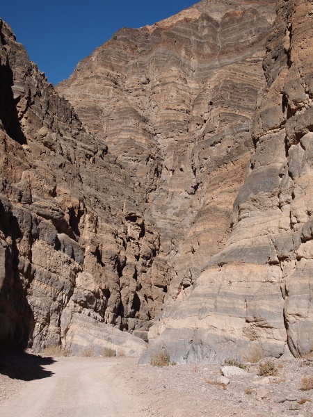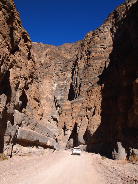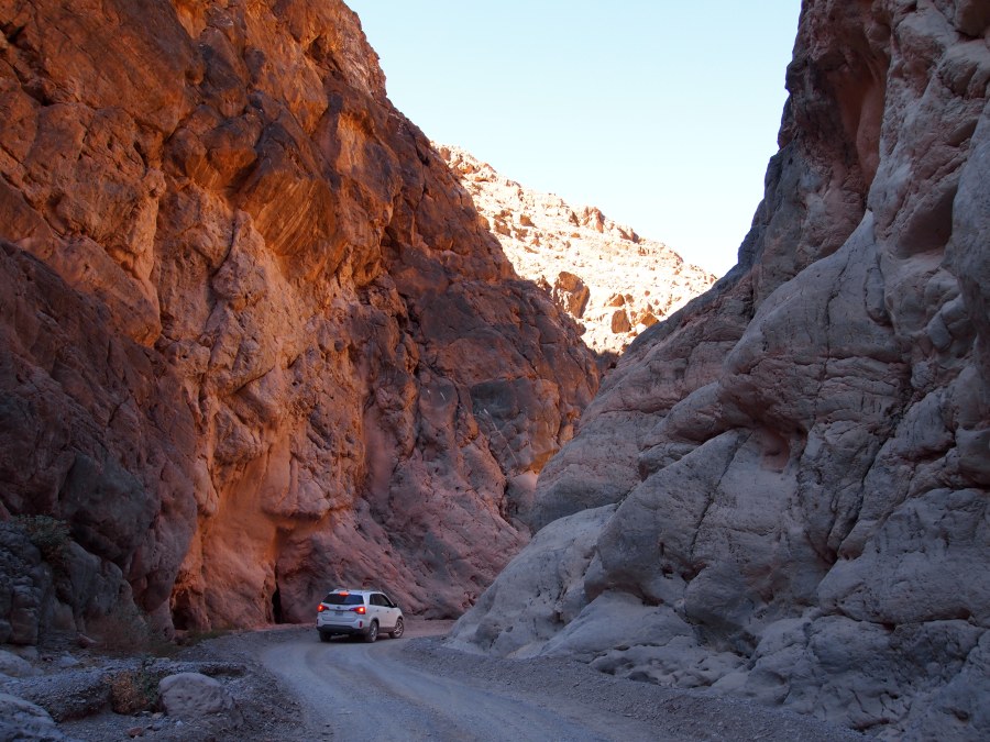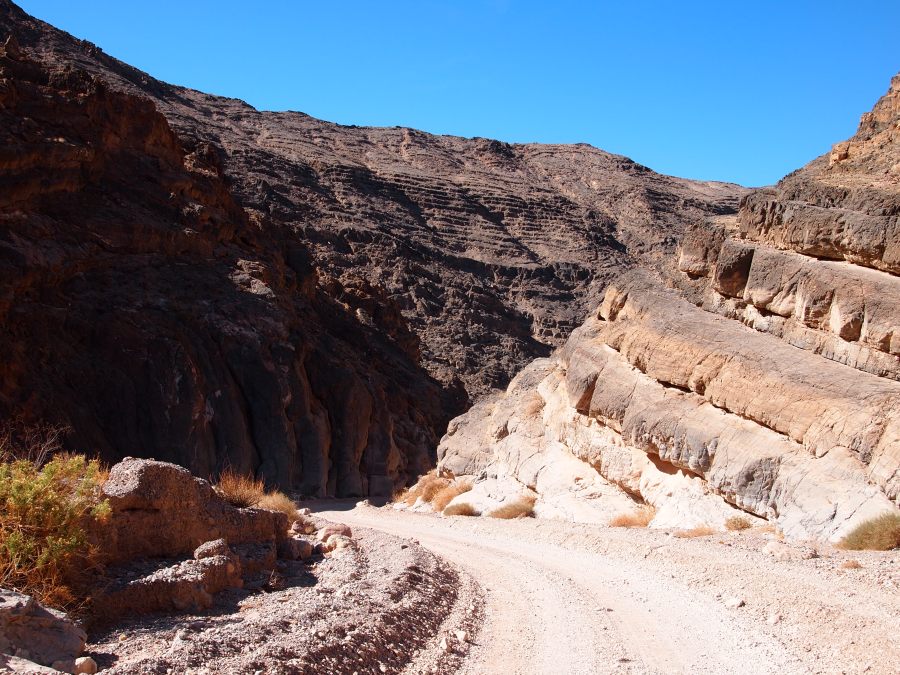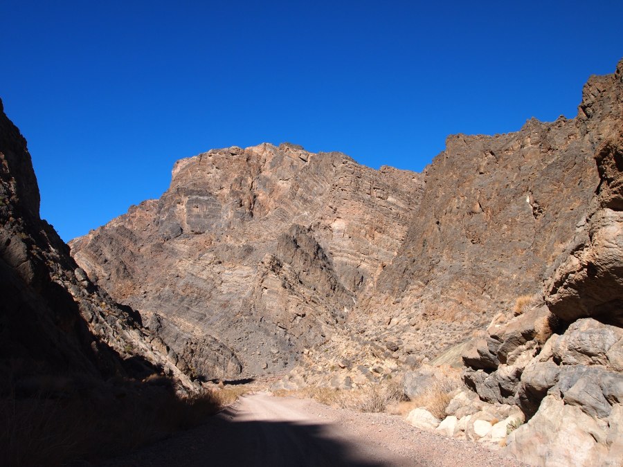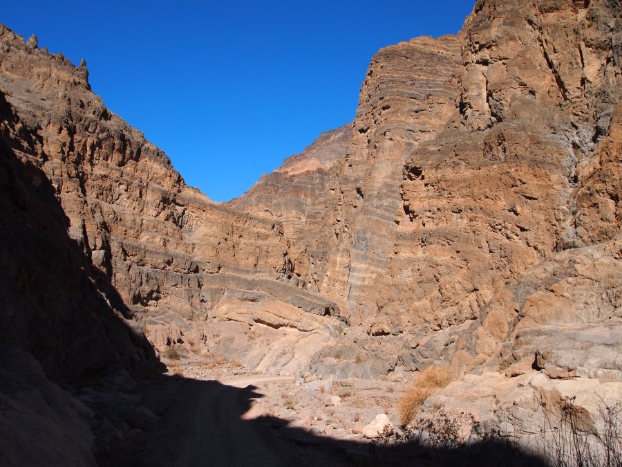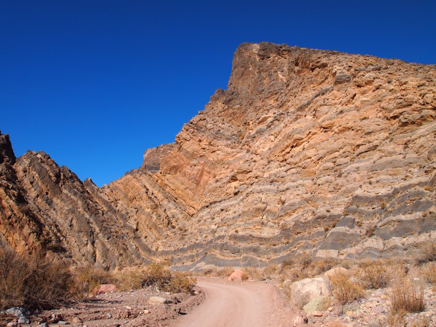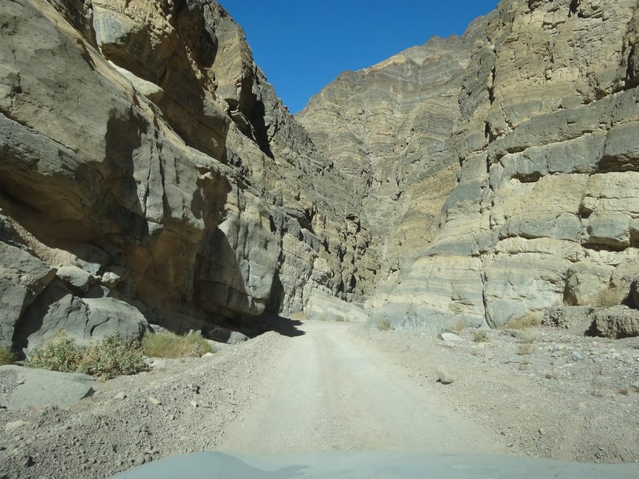 Auf der nun sehr holprigen Straße fuhren wir weiter. Es ging nur langsam voran, da wir ja nur normale Straßenreifen hatten und ich kein Risiko eingehen wollte. Im Mud Wash ging es besser voran. Bei einer Felswand hielten wir an um einen Cache zu heben der fast wie ein Altar in eine kleine Höhle gebaut war.