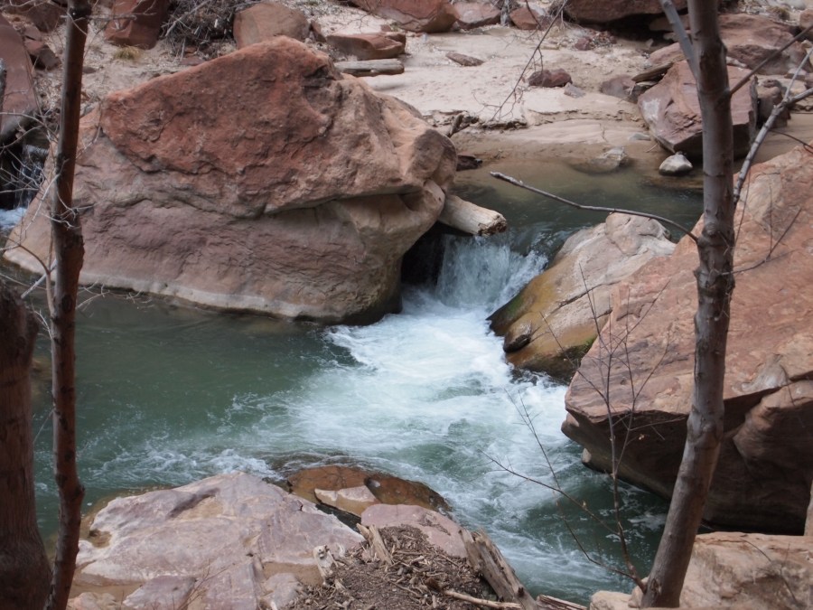 19.02.2014 Little FinlandAuf dem Weg nach St. Georges wollten wir Little Finland einen Besuch abstatten. Wieder vertratschten wir uns und schwupps waren wir auch schon an der Ausfahrt vorbei. Wir nutzten gleich die Gelegenheit um in Mesquite zu tanken und beim Wal Mart unsere Vorräte an Cola und Twix aufzustocken. Die 9 Meilen zurück und wir erreichten den Virgin River für eine kleine Pause.