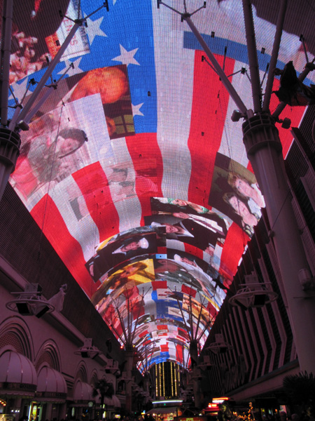 Auf geht’s zur Fremont Street. Die Lichter-Decke spielt natürlich die hier schon oft beschriebene Queen und Rocky Horror Picture Show Musik.