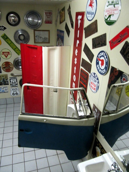 Sehr cool finde ich die Abtrennung zwischen Waschbecken und Pissoir auf dem Herrenklo. Das vor dem „Donnerbalken“ allerdings auch keine Tür ist, finde ich dann allerdings doch sehr gewöhnungsbedürftig.  :roll: