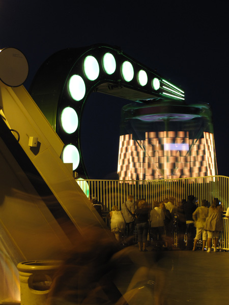 Ein Karussell das in 275 m Höhe über den Rand des Fernsehturms gedreht wird.
