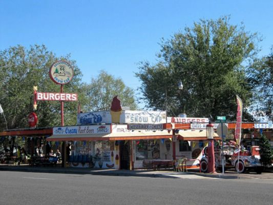 Wir halten in Williams, wo wir uns erst in aller Ruhe umsehen und dann in einem „typischen“ Diner ein paar Burger verdrücken.