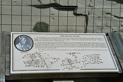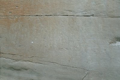 Die zweiten Schriftzeichen, etwas weiter auf dem Trail, hat man nun inzwischen durch einen Gitterkäfig geschützt. Das hatte aber zur Folge, dass wir zwar die Zeichnungen (ein Kampf zwischen verfeindeten Stämmen!) sehen konnten, aber auf den Fotos war zu wenig zu erkennen, dass ich es hier zeigen könnte.