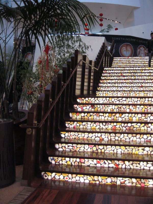 Nachdem wir bei Victoria Secret eingefallen sind und auch wieder Schuhe in unsere Taschen wanderten, entdeckt Gabi einen Stand, wo man sich die Fingernägel mit Folie „lackieren“ lassen kann. Sieht interessant aus.. Das Verkaufs-Talent an diesem Stand gibt alles und schlußendlich kaufen wir alle drei ein Päckchen mit 5 Foliensätzen (ich krieg noch eine geschenkt wegen meinem Geburtstag). Keine Ahnung mehr, was es gekostet hat, aber es sah/sieht gut aus. Der Flügel-Ring war das Geburtstagsgeschenk vom Hasen