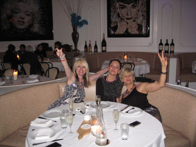 Frisch zurechtgemacht geht’s mit neuen Glitzerteilchen erneut ins Bagatelle. Gabi schreitet hocherhobenen Hauptes an der Schlange am Eingang vorbei zum Desk-Mitarbeiter.. das hätt‘ ich mich nicht getraut. Aber als wir zwei ihm wortreich erklären, daß wir heut morgen schon umsonst da waren und eine Reservierung haben, ist er wohl ob unseres Doppelpack-Auftretens (2 große Blondinen… das geht immer) ziemlich eingeschüchtert und führt uns sofort zum Tischanweiser.