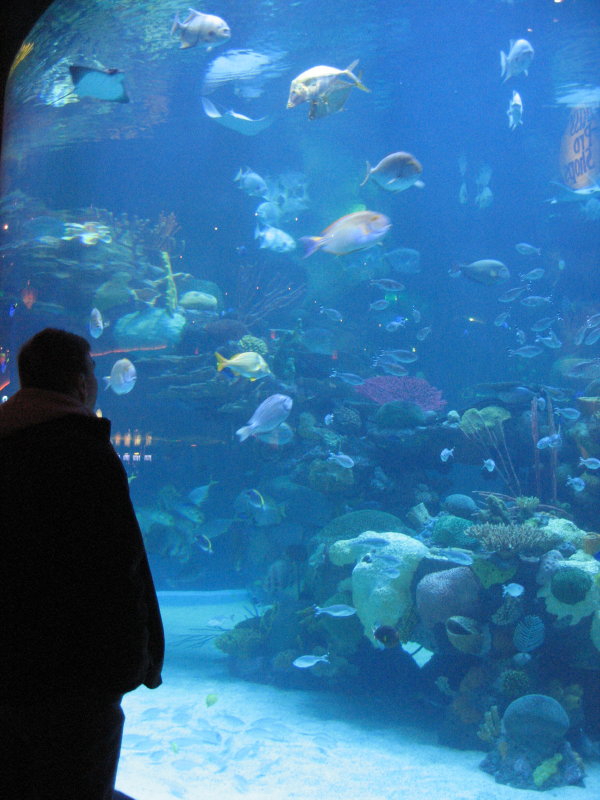 Das große Aquarium in der Eingangshalle des Silverton ist auch toll. Leider gibt’s hier keine Arielle-Show mehr, sondern nur noch Fische. Beim Versuch eine kleine Sardelle (Dorie aus „Findet Nemo“) zu fotografieren, renne ich eine andere Besucherin über den Haufen. Stellt Euch die große Blonde vor, Knipse im Anschlag und laut „Doriiiee“ rufend am Becken vorbeilaufend.. paff, gegen eine asiatische Lady gerannt. Die nahm es mit Humor.