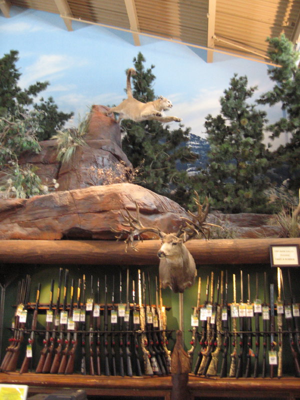 In dem riesigen Laden gibt’s Wasserfälle, viele ausgestopfte Tiere und einen Gunshop. Außerdem kann man Angeln und Boote, sowie Quads käuflich erwerben. Mir war nicht bewusst, wieviel verschiedene Angeln es gibt!