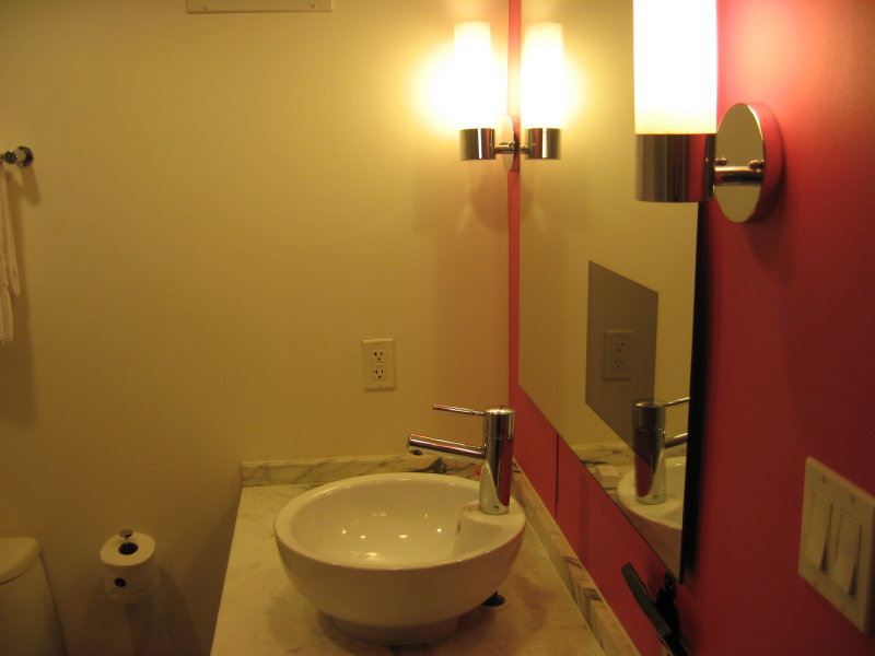 Durch die TR-Karte sparen wir uns die Warteschlange am normalen Check-In. Upgrade in den Go-Room gibt’s trotz Hinweis auf den Geburtstag und nettes Augenklimpern nur gegen Kohle. Nun gut, gegen Aufpreis nehmen wir den GO-Room im 23. Stock mit fountain view. Das Zimmer ist schön mit weißem Kunststoff und pinkfarbener Dusche. Ich mag mich irren, aber waren die Duschen in den Go-Zimmern nicht mal solche Eck-Dinger..? Muss mal meine alten Bilder checken..