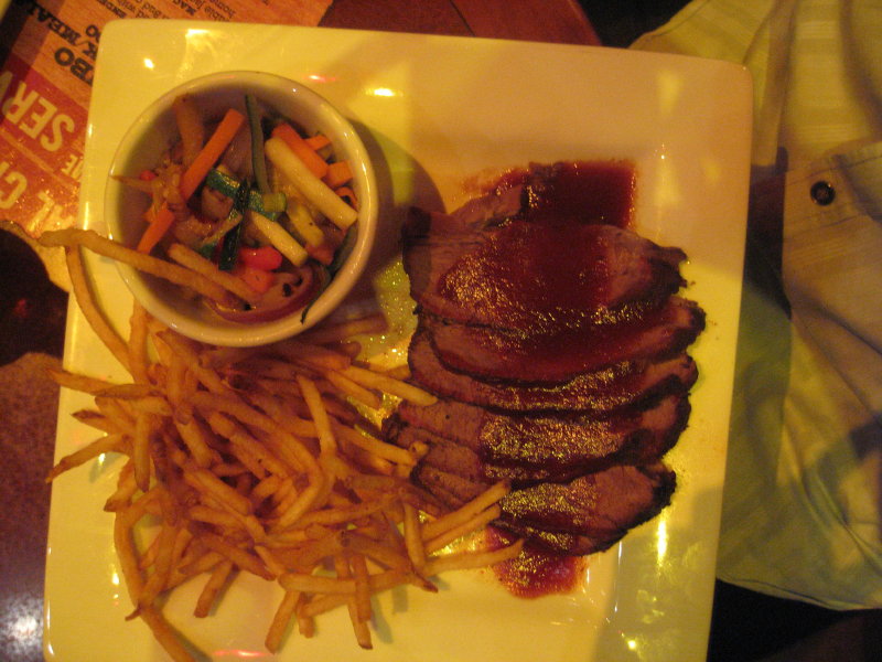 Das Essen hier ist aber dann wirklich klasse. Jeder von uns hat dank der Voucher 25$ frei zum Futtern. Der Hase und ich nehmen Spareribs als Vorspeise, dann ess‘ ich einen halben Gockel. Was Patrick als Hauptgericht genommen hat, weiss ich nicht mehr.. Fotos gibt’s aber