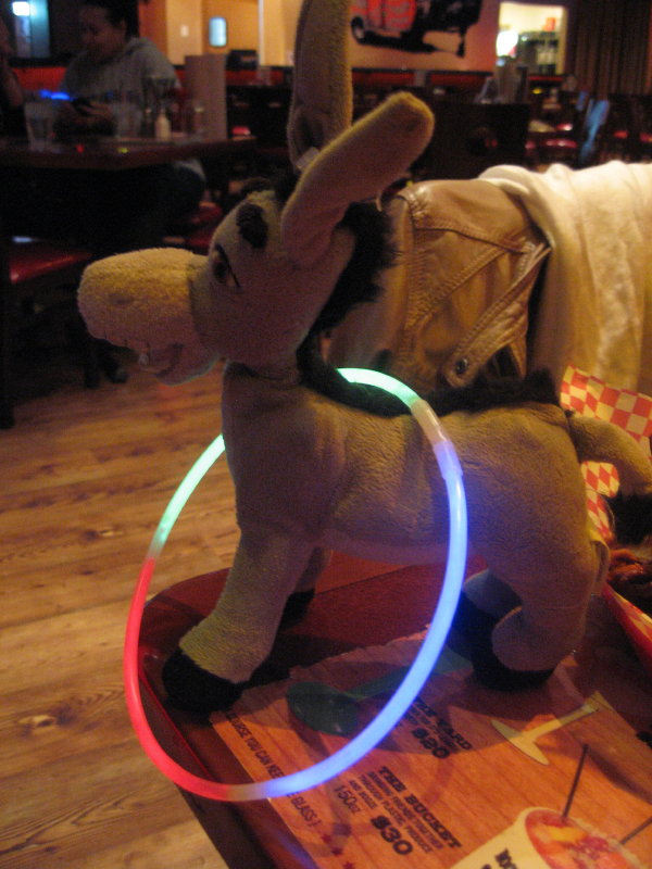 Neben dem guten Essen, findet auch hier Karaoke statt. Ein Möchtegern-Elvis wirft mit Leucht-Ringen um sich und bequatscht die Leute, auf die Bühne zu kommen. Zwischendurch gibt er den DJ. Sehr witzig!