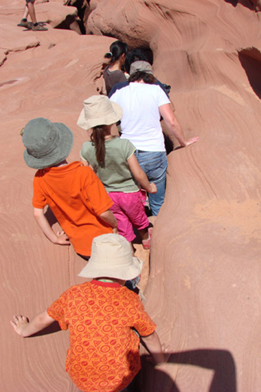 Die Kinder waren von den Canyons wie es scheint sehr beeindruckt, sie bauten gleich einen im roten Sand des CG nach.