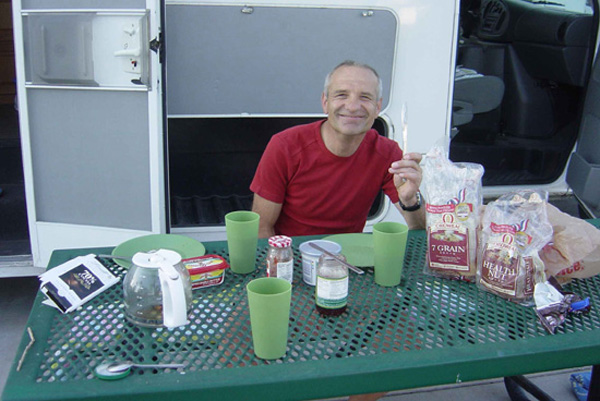 Am Abend kamen unsere Nachbarn mit ihren Schnellbooten auf den Anhängern am CG angefahren, da morgen für die meisten Amerikaner der letzte Urlaubstag ist. Mit großem Gejohle und einer Vorführehrenrunde. Generell war unsere CG-Gasse die Nobelgasse. Wir passten hier mit unseren Cruise America Campern gar nicht her. Die anderen CA-Camper wurden weiter oben „versteckt“. Rund um uns nur auf Hochglanz polierte Road Bear, Moturis und die Luxusbusse der Bootsbesitzer. Da passten unsere 2 schäbigen, abgeschossen und schon ziemlich zerbeulten RV´s nicht dazu.