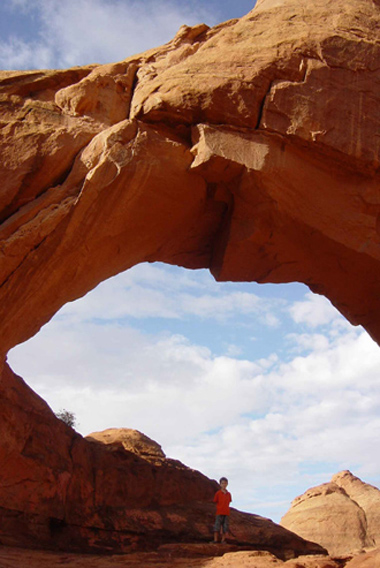 In der Nacht gab es wieder Gewitter mit Regen. Bei Sonnenaufgang hat es so richtig zu regnen begonnen. Als wir aufstanden, war aber schon zu sehen, dass es bald besser werden wird. Im Süden, aus der Richtung kamen die Wolken, war schon etwas blauer Himmel zu sehen. Nach dem Frühstück kam auch schon die Sonne hervor. Florian und Heike gingen noch zu einem Arch, den Florian der unweit des CG entdeckt hatte.