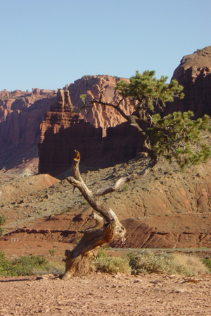 Nach einer angenehmen Nacht fuhren wir schon recht zeitig mit einem RV zum Capitol Reef. Schon bei der Anfahrt wurde die Umgebung von Meile zu Meile immer mehr von tiefroten Steinen bestimmt.