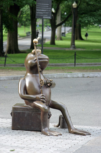 Gegen sieben Uhr morgens spazierte ich dann zum Hotel hinaus und stellte fest, dass schon jetzt eigentlich kein Lange-Hosen-Wetter mehr war. Mit einem Sandwich setzte ich mich erst mal zum Frühstück auf eine Parkband im Boston Common, schaute einer Frühsportgruppe bei ihren Übungen zu und wehrte ein paar hungrige Squirrels ab.