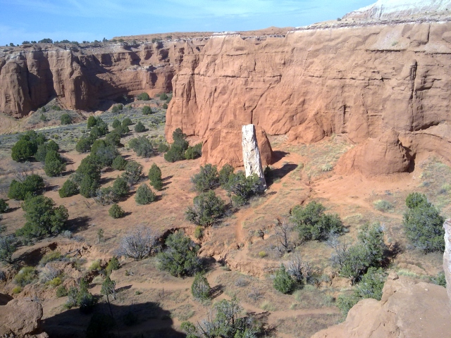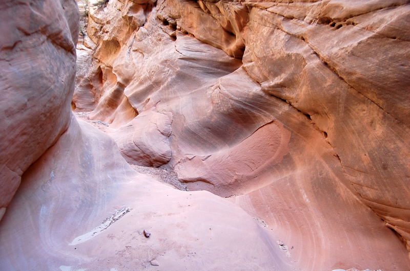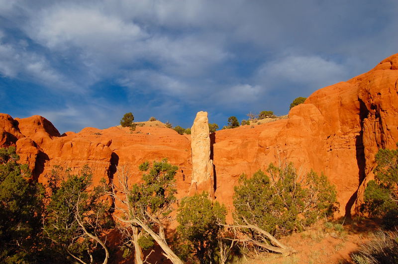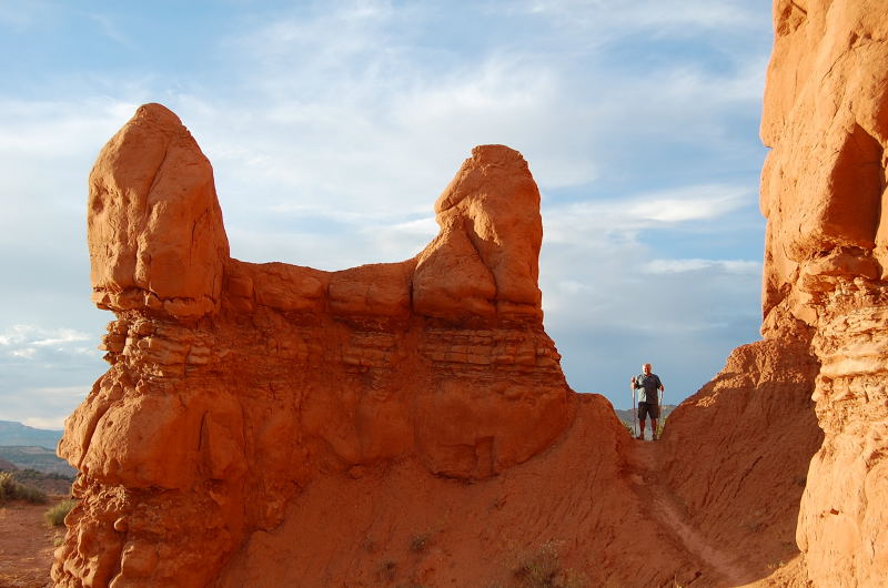 Der Weg zieht sich und mir ist anhand der etwas unzureichenden Karte nicht ganz klar wo ich mich eigentlich befinde.  :help: Es beunruhigt mich etwas, dass ich mich immer noch vom Trailhead weg bewege und mir läuft die Zeit davon. Die Sonne steht schon recht tief, die verabredete Abendessenszeit rückt näher und näher. Der gesamte Trail soll 3 Meilen, also so ca 5 Kilometer sein und ist einer der  längsten hier im Kodachrome Basin State Park, aber was sind schon 5 Kilometer, die laufe ich doch locker in einer knappen Stunde.  :nixwieweg: