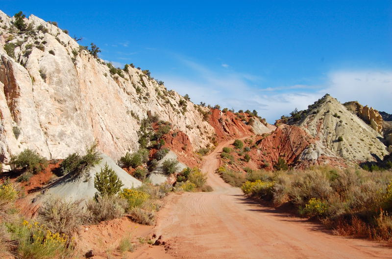 Heute stehen die Cottonwood Narrows auf meinem Programm und den Yellow Rock würde ich auch gern erkunden. Nicht so weit weg von uns, nur leider an der etwas ungemütlich zu befahrenden CCR. Aber wenn wir schon mal hier sind, dann will ich mir das doch nicht entgehen lassen. Wir  :zaehne: und  :burger: und starten dann erst mal Richtung Cannonville um Nevada Blacky mit Treibstoff zu versorgen und einige Vorräte zu ergänzen. Es sind 7 Meilen vom Park bis dort hin und Kaffee gibt es auch für die Fahrt. Das liebe ich echt mittlerweile, im Auto, im sicheren Halter den Kaffee griffbereit für unterwegs. Allerdings nur hier im Amiland, Zuhause mache ich das nie, obwohl mein Auto jetzt auch schon  so eine Halterung besitzt, allerdings nicht ganz so luxuriös wie Nevad Blacky.