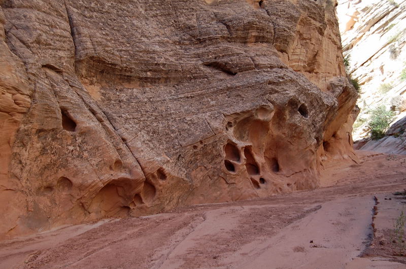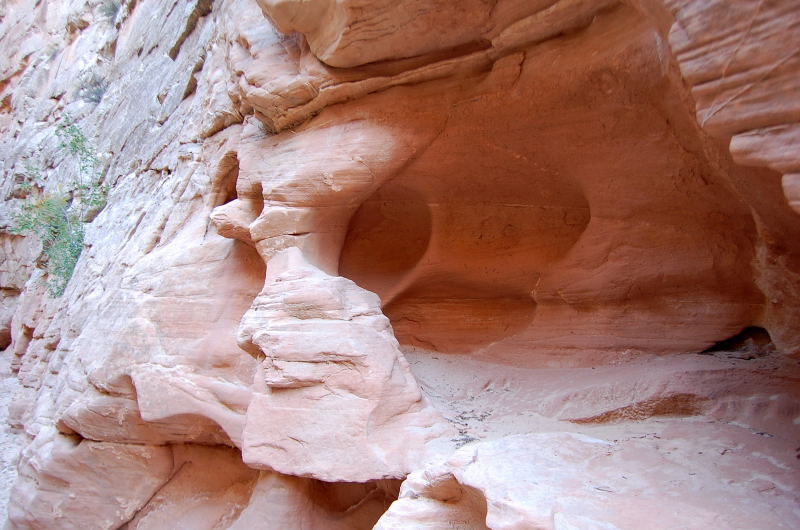 Die Canyonwanderung ist ganz abwechslungsreich, wenn auch nicht umwerfend. Wasser ist absolut keines vorhanden und so wie es aussieht war auch schon eine ganze Weile keins mehr da. Es gibt immer mal wieder schöne glatt geschliffene Felswandabschnitte und schöne Blicke nach oben. Die Sonne schafft es auch schon ab und an tief in den Canyon vorzudringen.