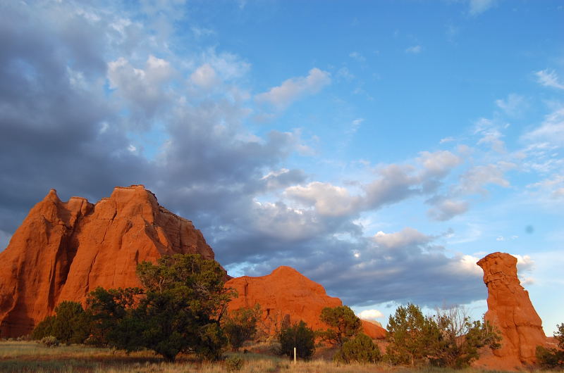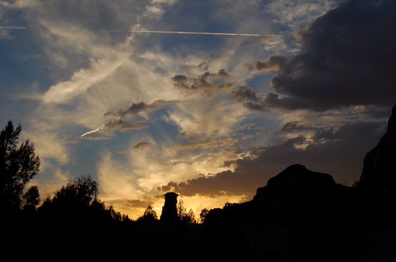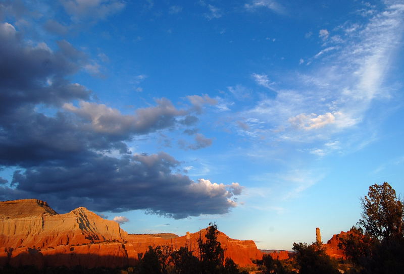 Jetzt wird der Grill noch schnell angeheizt, es gilt noch Steaks zu veredeln und den Hunger von 2 Canyonwanderern zu stillen. Das gelingt auch noch ganz gut bevor es recht windig wird. Wir können sogar noch auf der Veranda essen und die Gewitterwolken dabei bewundern. Dann ist eh relaxen angesagt.  Die Gewitter sorgen im Kodachrome nur für ein laues und etwas kühleres Lüftchen mehr passiert nicht. Ich glaube auch nicht, dass die CCR irgend einen Tropfen abgekriegt hat, aber Richtung Bryce Canyon sah es verdächtig nach Regen aus. Ich bin trotzdem froh nicht zum Yellow Rock gefahren zu sein, denn ich hätte vor lauter Angst überhaupt nichts von der Tour gehabt.  :zuberge: