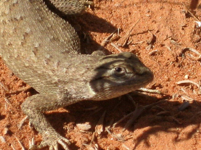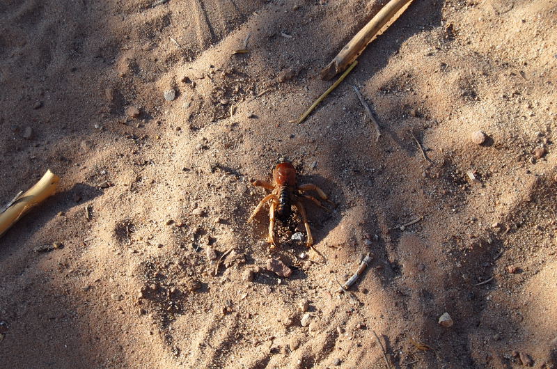 Er marschiert wie immer einen halben Kilometer hinter mir und muss an jeder Ecke etwas begutachten oder an seinem Naturstock noch den letzten Feinschliff anbringen. Ich entdecke eine kleinere tote Tarantel und die wird natürlich digital archiviert, nachdem Intensiv Wanderer aufgeholt hat, verewigt er die Spinne gleich noch mal. Na denn, wo bleibt denn nun die nächste Klapperschlange? (wie ich ja inzwischen weiß hatte es bis jetzt ja nur die ollen Gopher Snakes).