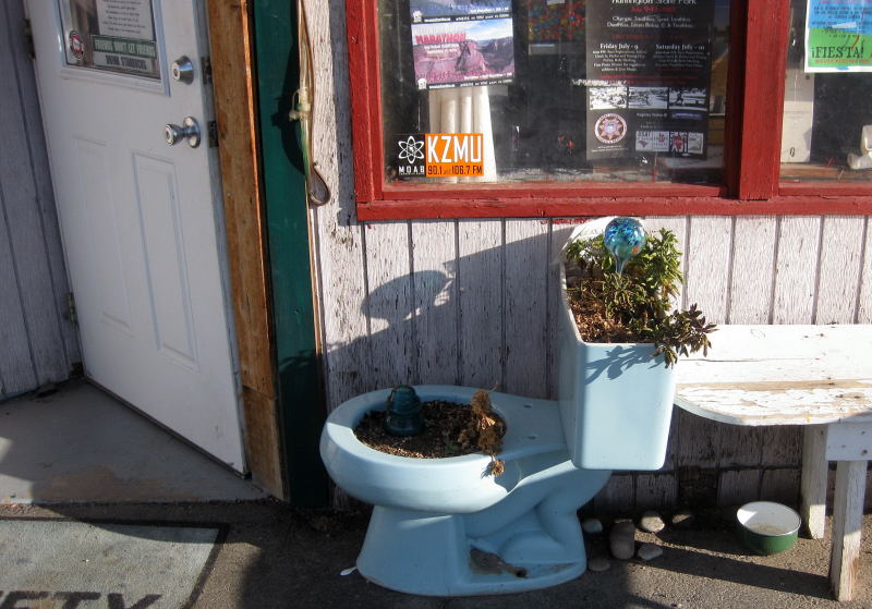 Wir steuern dann noch so einen Outdoorfreakladen an und ich erkundige mich ob es hier in Moab eine Möglichkeit gibt mein Delorme Earthmate nachschauen zu lassen, es lässt mich nämlich grad im Stich und kooperiert nicht mehr und ich kann so gar keine Tracks aufzeichnen oder nachfahren, bzw wandern. Doch dem kann nicht geholfen werden, dafür müsste ich schon mindestens nach Grand Junction oder Denver. Na, dann halt ohne Delorme Earthmate, bin ja nicht unterversorgt, ich habe ja noch mein Garmin Etrex und das hat bisher nicht versagt. Was wäre denn das Leben ohne technische Spielereien und neue Herausforderungen.