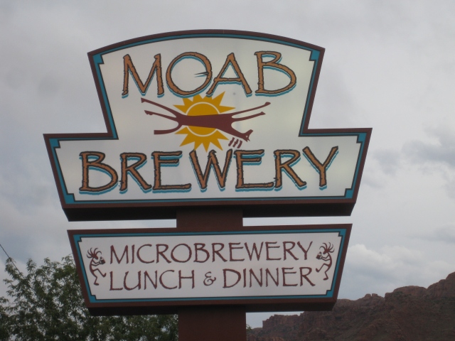 Das Zimmer mit 2 Queensizebetten ist riesig und hat eine komplette Küchenzeile, mit echtem Geschirr. Es gibt sogar einen Kühlschrank mit Gefrierschrank, für den absoluten Luxus fehlt nur noch der Toaster. Das Rustic Inn hat einen Pool und eine Laundry (Wäscherei) und es liegt recht zentral mitten in Moab, ein paar Blocks entfernt von der Moab Brewery. Wir nisten uns also ein und bauen unser Equipment auf, Internet funktioniert auch und Handyempfang ist voll Power, die Zivilisation hat uns wieder. Nach etwas Rumgelampel mit Recherche und Laundry testen, ziehen wir los auf Moab Erkundung. Letztes Jahr waren wir im Sleep Inn und das liegt recht weit draußen, so waren wir kaum in der Stadt. Wir finden auch gleich einen Allroundladen für Herbert, wo es von der Gartenschaufel bis zur Unterhose alles gibt, er liebt es sich das amerikanische Warenangebot anzusehen. Eine Vorliebe, die ich nicht unbedingt teile, und so muss ich mir die Zeit anders vertreiben und studiere das Süßigkeiten Angebot. Ich entdecke die Hershey`s Küsschen in Almondsorte und das ist neu, wird also gleich mal getestet. Nachdem Herbert sich zufrieden geguckt hat geht es weiter Richtung Moab Brewery.