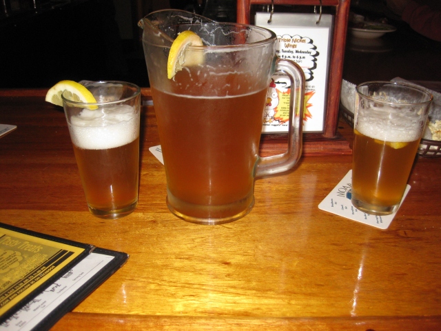 Dann starten wir unseren Biersorten Test in der Moab Brewery, es gibt kleine Gläschen für -,65 Cent um die verschiedenen Sorten der Brauerei zu versuchen. Wir bleiben beim Elephant Hill Weizen hängen, eindeutig unser Favorit, auch wenn das Bier, für unsere Verhältnisse ungewohnt, mit einer halben Zitrone serviert wird. Herbert sucht sich einen Toast mit Ham und Sauerkraut aus, es gibt die obligatorischen French Fries dazu, und der Imbiss reicht für den kleinen Hunger von uns beiden. Auf der Theke stehen Körbchen mit Popcorn zum knabbern und die sind schön Chilischarf, eine neue Variante für uns. So trinken wir gemütlich ein paar Bierchen und genießen die Atmosphäre. Natürlich hat es an jeder Wand einen Flat Screen Fernseher und in jedem läuft ein anderes Programm, man/frau muss sich also nicht unbedingt unterhalten in der Kneipe, doch die meisten tun das schon und der Glotze wird nur ab und an Aufmerksamkeit geschenkt.