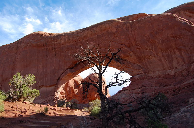 Am Trailhead für die Windows ist schon einiges geboten, da stehen Autos mit Nummernschildern aus ganz Amerika rum. Ich fange mal an Nummernschilder zu knipsen, mal sehen ob ich alle 52 zusammen bekomme. Natürlich knipse ich nur die welche eh auf meinem Weg stehen und laufe nicht den ganzen Parkplatz ab, muss meine Energie doch für die Arches aufheben. Also geht es den Pfad hoch zum North Window, echt riesig dieser Arche.