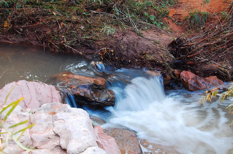 Wir marschieren los und ich kann nun auch fototechnische Experimente mit fließendem Wasser machen, will ich doch endlich mal schaffen, dass es so milchig weiß auf den Bildern erscheint. Der Negro Bill hat reichlich Wasser, es hat ja schließlich auch genug geregnet. So wie es aussieht hatte er vor kurzem so gar recht viel mehr Wasser zu bieten, denn der Uferbereich weist Spuren von Durchflutung auf.