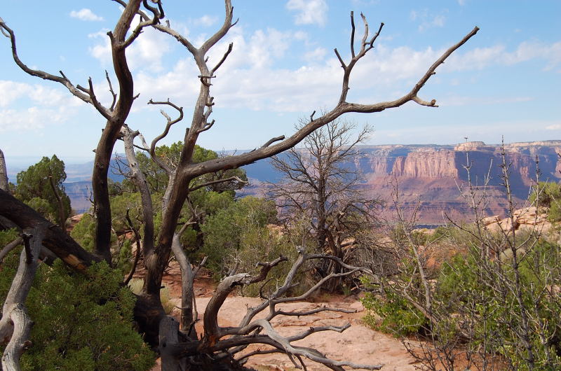 Auf dem Rückweg statten wir dem Dead Horse State Park dann noch einen kurzen Besuch ab und erfreuen uns am Anblick des Shafer Trails, welchen wir letztes Jahr gefahren sind. Herbert möchte das gleich wieder tun, doch nach dem Regen der letzten Tage traue ich dem nicht so und weigere mich. Vom Dead Horse Viewpoint kann man einen Teil der Potash Road gut übersehen und da ist doch tatsächlich auch ein Jeep und ein paar ATVs unterwegs. Ich bin aber inzwischen totmüde, habe ja kaum was geschlafen diese Nacht, und da bringt mich nix auf diese über 2 Stunden Offroad Tour.  :dagegen: