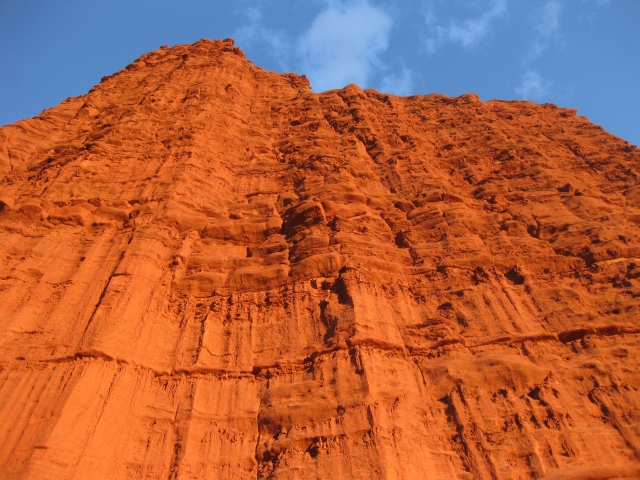 Der Weg zieht sich und wir sehen immer mal wieder wie weit wir noch gehen müssen oder können, denn es sind Andere vor uns unterwegs. Ich wollte eigentlich schon bis Sonnenuntergang wieder am Parkplatz sein und der ist hier so gegen 18.55 Uhr. Um diese zeit sind wir dann gerade mal am „the Titan“ angelangt. Um den zu sehen geht man unterhalb einer dieser riesigen, roten Wände vorbei und beim Blick nach oben denke ich nur:“ bloß kein Erdbeben jetzt“! Bin schon zeitweise eine kleine Angstneurotikerin.  :nixwieweg: